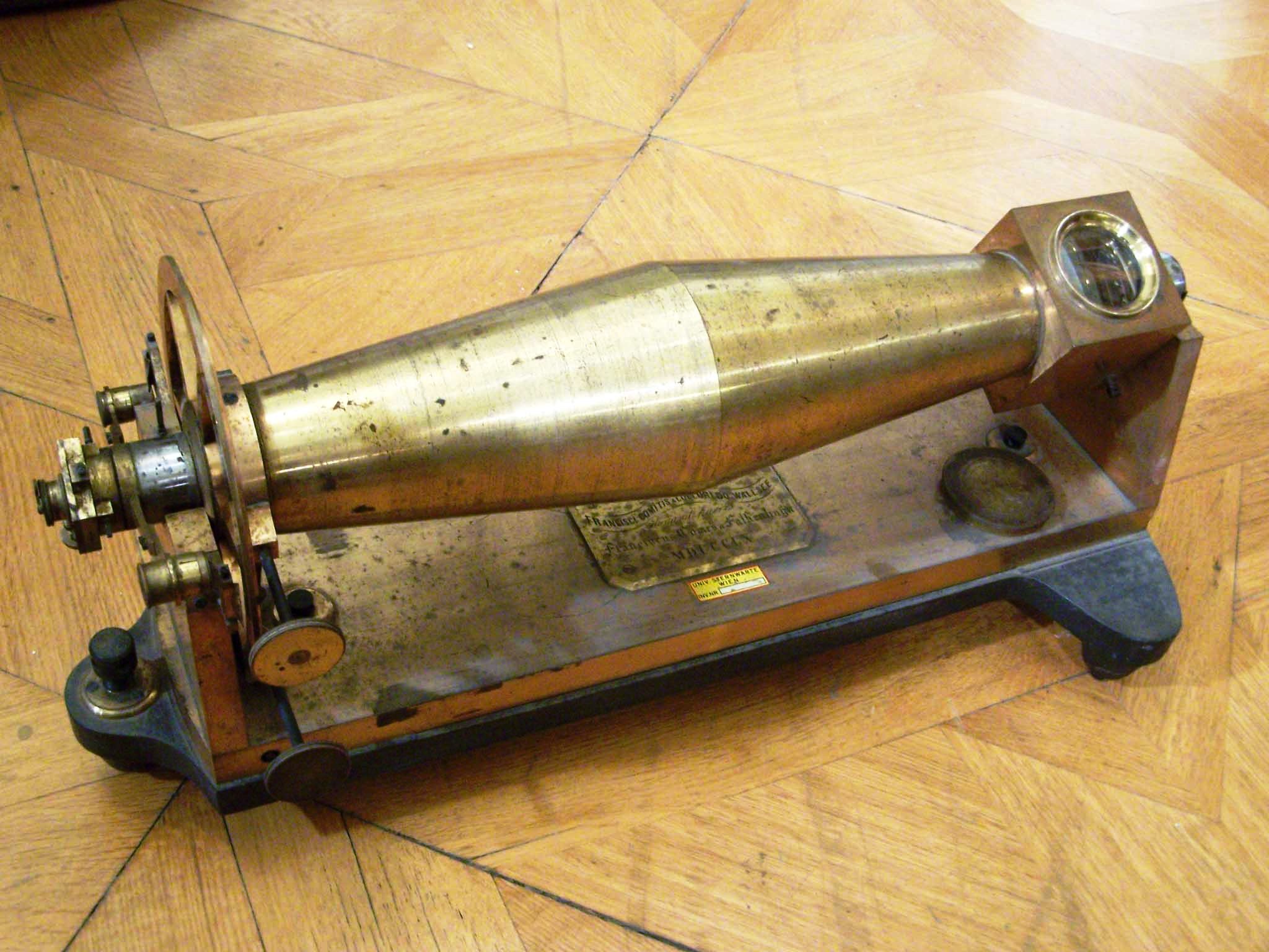 Dieses dialytische Fernrohr wurde um 1850 gebaut. Es ist ein achromatisches Fernrohr und besitzt Linsen aus verschiedenen Glassorten um für zwei Wellenlängen des sichtbaren Lichts denselben Brennpunkt zu erzeugen. Das Instrument befindet sich im Museum der Universitätssternwarte Wien.